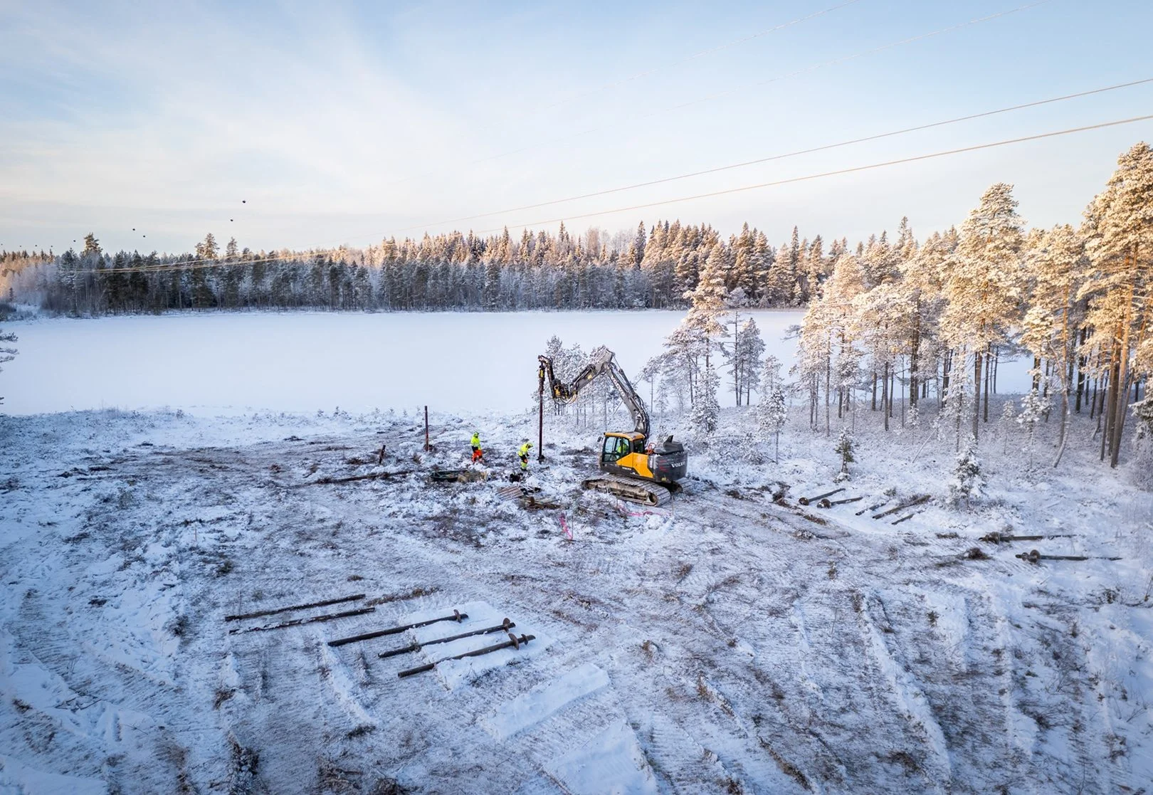 Die Installation erfolgt mit einer Maschine und einem hydraulischen Antriebskopf. Jeder hydraulische Träger funktioniert: Bagger, Radlader oder HIAB-LKW. Ein typisches Wohnhausfundament wird in einer einzigen Arbeitsschicht fertiggestellt. Die Schulung findet an echten Projekten mit praktischer Unterstützung statt. Einige Installationsaufträge kommen auch direkt über Paalupiste, und wir leiten diese an lokale Installationsteams in der jeweiligen Region weiter.